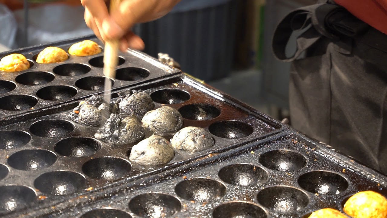 Black Takoyaki for 500 YEN, $4.50 US dollars which is actually Bamboo Charcoal takoyaki.