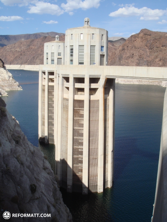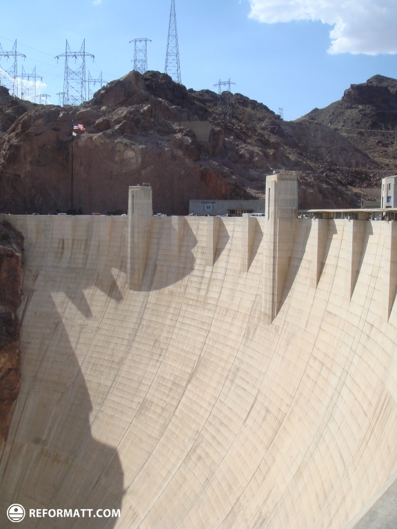 Breathtaking dam on the Nevada and Arizona state border which generates a whopping 6800 megawatts of electricity and has a height of 726 feet.