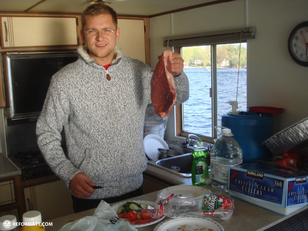 While cooking the fish - chris tried to dock the boat of which I was not aware, he rammed the dock which caused the fry pan with fish to fly through the kitchen, thank god nobody got burned.