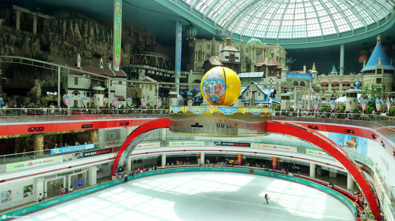 Lotte world has some of the most amazing attractions I have ever since ranging from a gigantic indoor ice skating ring with an indoor roller-coaster to a massive fairy-tale castle in the courtyard.