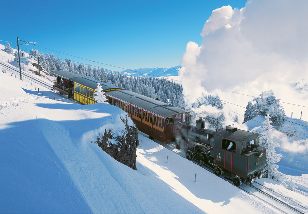 Take the ferry to Vitznau for the most charming cogwheel train ride to the peak of Rigi. Also, this is the oldest mountain railway in Europe.